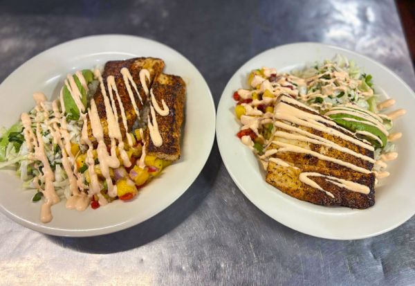 Seafood Bowl with Grilled Mahi~ cilantro slaw, avocado, tomatoes & pineapple salsa over rice $22.99!!